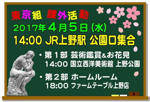 ★ 東京組 春の校外学習 2019/4/4開催 ★ 写真は→アルバム頁へ