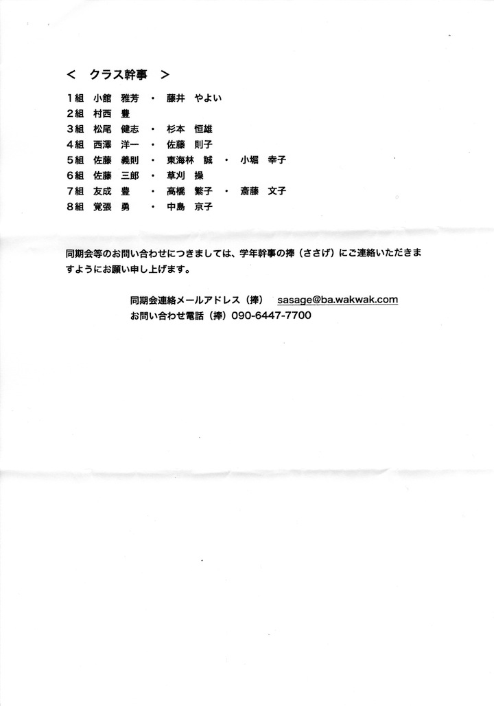 懐かしい名前が見つかりましたか、是非まだ出欠をお悩みの方は
