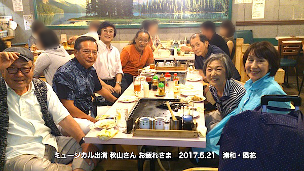 今年の5月秋山さんのミュージカルの後、食事をした時の写真を載せます。光一君安らかに…。
